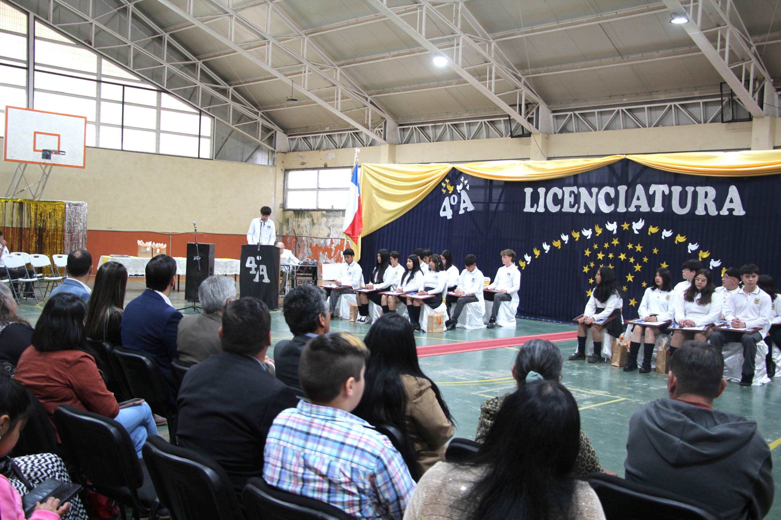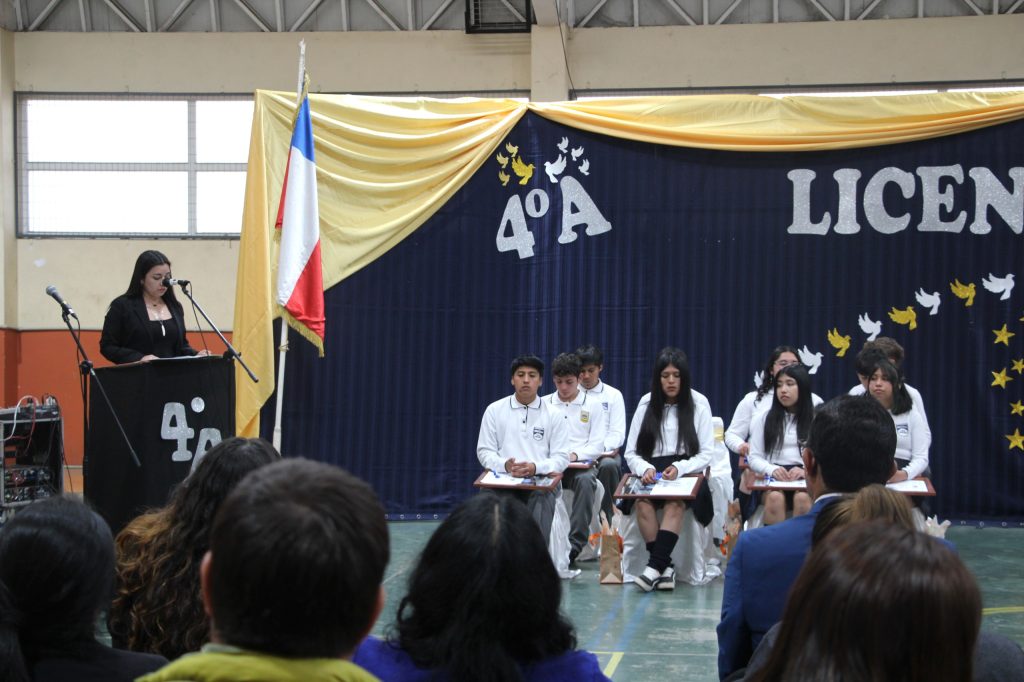 En el Gimnasio de la Escuela Bernardo Ñanco se llevó a cabo la Ceremonia Simbólica de Egreso del Cuarto Medio A, instancia organizada para destacar el esfuerzo, la perseverancia y el camino recorrido por las y los estudiantes que concluyen su educación media.